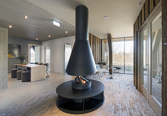 De toegepaste mix van verschillende houtsoorten zorgt bovendien voor een natuurlijke uitstraling en een geborgen gevoel. Het gebouw is ingetogen ingericht met grotendeels betonnen vloeren, klinkerbestrating, donker gebeitste ruwe houten schaaldelen en een eenvoudige open haard.