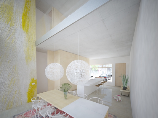 Het nieuwbouwproject aan de lommerrijke Noordsingel in het Oude Noorden bestaat uit zes woningen, bedoeld voor jonge gezinnen en zogenoemde ‘empty nesters’, gezinnen waarvan de kinderen zijn uitgevlogen. Op de begane grond komt een espresso-wijnbar als ontmoetingsplek in de wijk.