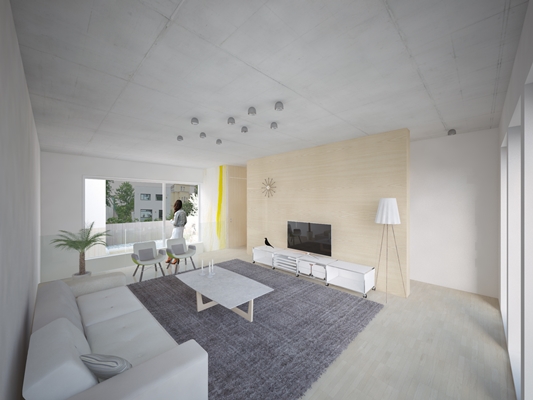 Bijzonder aan het project is het gebruikte bouwsysteem, meldt Buijsen. “Het systeem met geïsoleerde holle wanden is mede gekozen vanwege de zeer beperkte ruimte op de bouwplaats”, aldus de architect. “Hierdoor kunnen de elementen direct op de juiste plaats gesteld worde. Voor de achtergevel dienen ze tevens als afgewerkte gevel.”