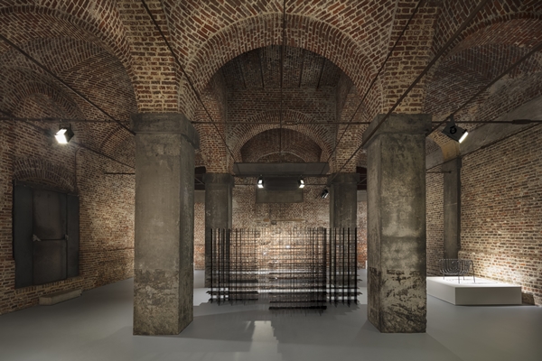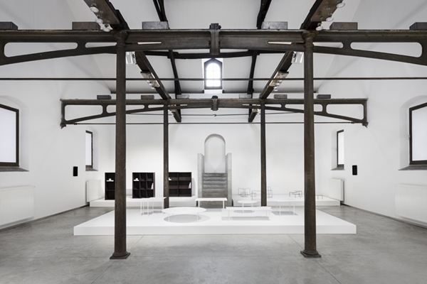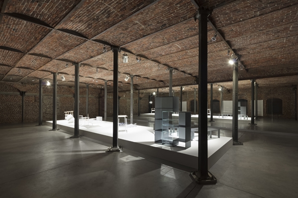 We lopen langs de vele ontwerpen in de ruimtes van het voormalige industriële complex, waar Oki Sato op uitnodiging van het
