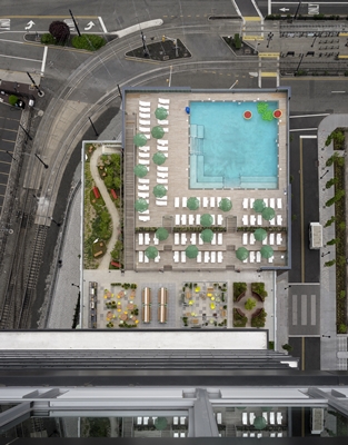 Jersey City Urby staat direct aan de Hudson-rivier en biedt uitzicht op Manhattan. De toren heeft geen lobby, maar een entree met een publiek toegankelijk café. De gemeenschappelijke ruimten worden geprogrammeerd om bewoners bij elkaar te brengen en bestaan uit een keuken, een sportschool, een tuin en een zwembad.
