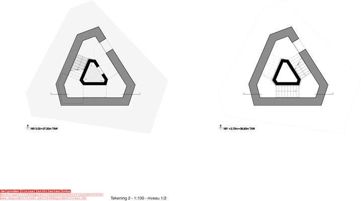 De klim naar het uitkijkplatform is opgesplitst in verschillende trappartijen, die op de bovenste drie lagen leiden naar bordessen met ieder een eigen perspectief op de omgeving. De driehoekige footprint en de positie van de afgeknotte hoeken zijn dan ook ontstaan uit de belangrijkste zichtassen op de wijde omgeving, aldus De Gouden Liniaal.