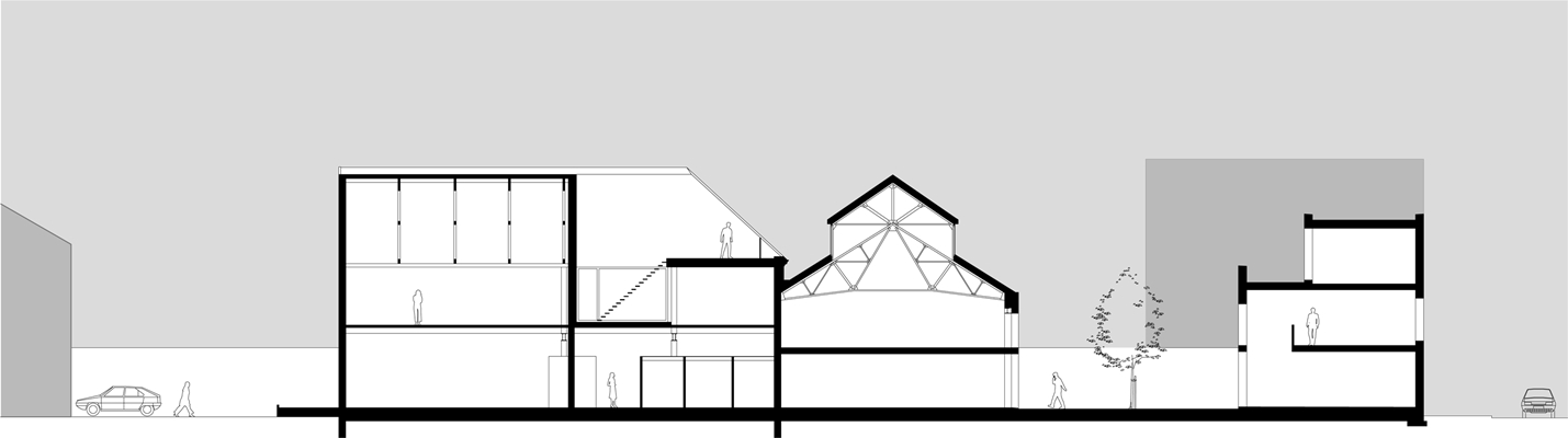 Als oplossing daarvoor heeft GAAGA een van de bouwdelen, een volgens het architectenbureau weinig karakteristieke hal in het binnengebied, gesloopt. Hiermee zijn een extra gevel voor de woningen en een binnenhofje gerealiseerd.