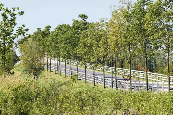 Verder transformeerde het bureau het weidelandschap naar een waterrijk natuur- en parklandschap, waar verschillende voet- en fietspaden plus een autoweg in zijn ingepast. De detaillering en keuze van de elementen zijn opvallend maar samenhangend door het project verweven.