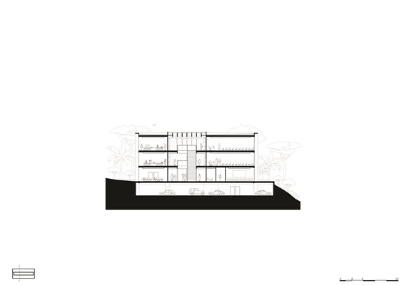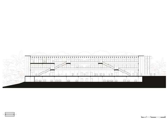 Door gebruik te maken van de topografische kenmerken van de locatie plaatst KAAN Architecten het gebouw stevig op de grond, terwijl het visueel opent naar de stad. Verticale betonnen lamellen voorzien het faculteitsgebouw van schaduw en verzachten het Braziliaanse zonlicht.