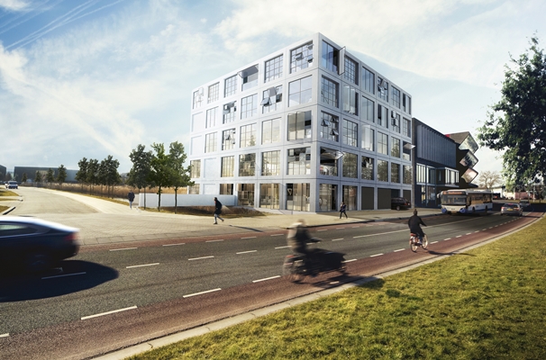Bovendien krijgt het gebouw op die manier aan elke zijde een ander aanzicht. Het kantoorgebouw voor met name creatieve ondernemers wordt opgebouwd uit een betonnen volume van dertig bij dertig bij twintig meter en zal vijf verdiepingen tellen. Door kleine betonnen frames op elkaar te stapelen ontstaat een industrieel ogend gebouw, passend in de omgeving.