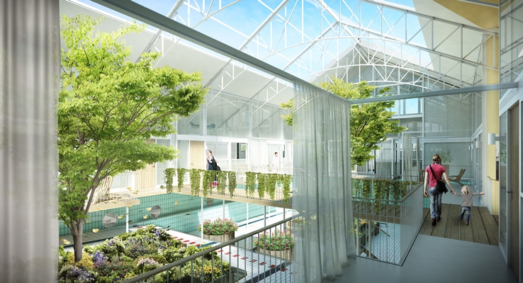 Het architectenbureau heeft een ontwerp gemaakt voor de transformatie van het voormalige zwembad tot woongebouw. Het zwembassin krijgt een nieuwe bestemming als gemeenschappelijke binnentuin. Rondom het bad worden zes woningen gerealiseerd die door hun ligging alle anders zijn.