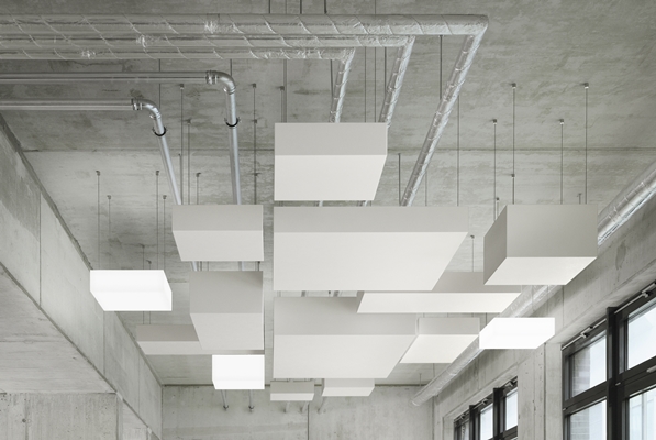 Recentelijk hebben we onze kubusvormige Corpus plafondeilanden geïntroduceerd. De Corpus-serie is een nieuw en zeer flexibel concept voor plafondontwerp. Met tien verschillende rechthoekige vormen geeft u iedere ruimte een duidelijk herkenbaar, eigen karakter. Corpus is bijzonder geschikt in zeer grote ruimtes waar het helpt alle andere elementen met elkaar te verbinden. Dankzij de hoge absorptiewaarde (1.00 aw) wordt iedere ruimte uiteraard voorzien van uitstekende akoestiek.
