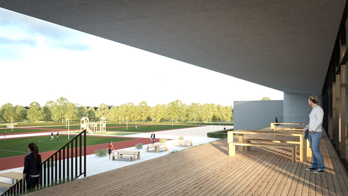 Gebouw met sheddaken fungeert als hart van vernieuwd sportpark