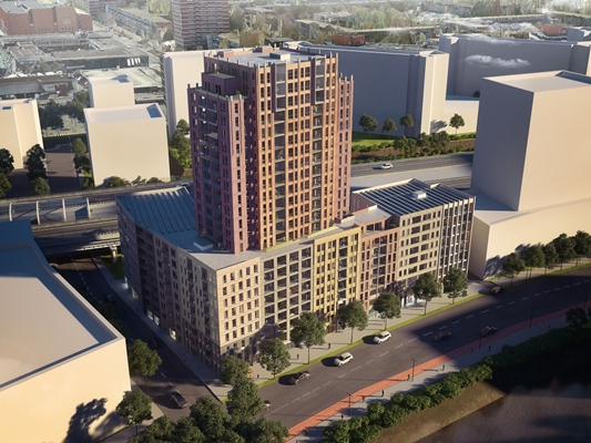 Bouw blok met woningen en hotels Amsterdam-Noord van start