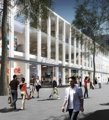 De winkels aan de Lijnbaan worden aan de achterzijde uitgebreid en voorzien van een nieuwe glasgevel. Ondanks de schaalvergroting zullen ze in ritmiek en materiaalkeuze aansluiten bij de bestaande Lijnbaanwinkels. Aan de zijde Oldenbarneveltplaats komt een flagshipstore van Primark.