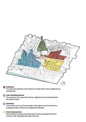 In de binnenstad van Detroit wordt begin volgend jaar gestart met de bouw van een multifunctioneel project. Monroe Blocks behelst onder meer de eerste kantoorhoogbouw sinds jaren in de stad, die in 2013 getroffen werd door een faillissement. Verder worden onder andere 480 woningen, winkels en sport- en leisurefaciliteiten gerealiseerd.