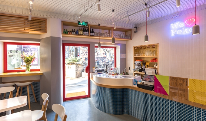 Poké, ook in Nederland toenemend populair, is een traditioneel Hawaiiaans gerecht dat bestaat uit vooral verse vis en groentes, geserveerd in een kom. De opdrachtgever vroeg Studio Doho een eigentijds eetcafé te ontwerpen, dat de oorsprong van de gerechten zou weerspiegelen. Daarbij was de ruimte beperkt tot 32 m