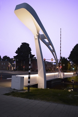 Om dit probleem te bedwingen heeft het architectenbureau de hoogte van de hamei vergroot en de hamei naar het water gebogen. Het ontwerp bleef daarmee precies binnen de gestelde normen, aldus Van Zuuk. Omwille van het familieverband is voor de Nobellaan een vergelijkbare brug - de Weiersbrug - ontworpen, waarvan de hamei juist van het water af is gebogen.