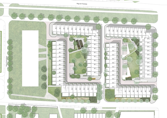 de tender voor twee blokken met 82 eengezinswoningen in de Amsterdamse wijk Jeruzalem gewonnen. In het ontwerp voor zowel de bebouwing als openbare ruimte wordt uitgegaan van de bestaande monumentale kwaliteiten van de wijk in de Watergraafsmeer.