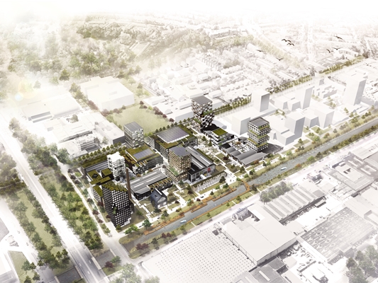 . Volgens hun plan blijven vijf historische fabrieksgebouwen behouden en vormen ze samen het multifunctionele hart van de wijk (onder de naam De Zuivelfabriek).