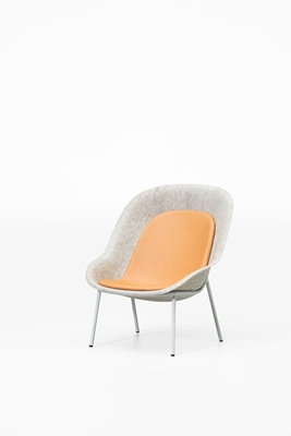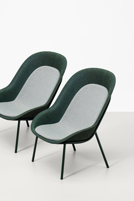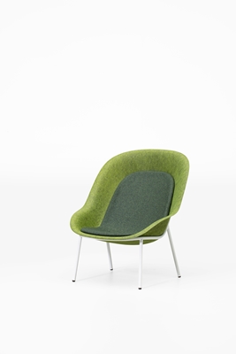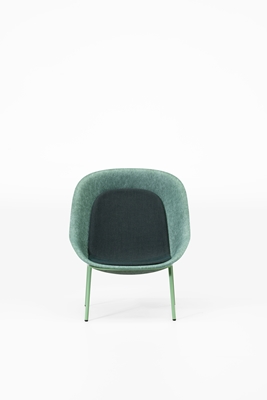 De schaal uit PET-vilt is beschikbaar in tien kleuren. Daarnaast is het staalframe in elke RAL-kleur mogelijk en kan het kussen in verschillende kleuren worden bekleed. Door de verschillende kleurmogelijkheden van de drie onderdelen onderling te combineren, is het mogelijk om de fauteuil tot op grote hoogte af te stemmen op het project.