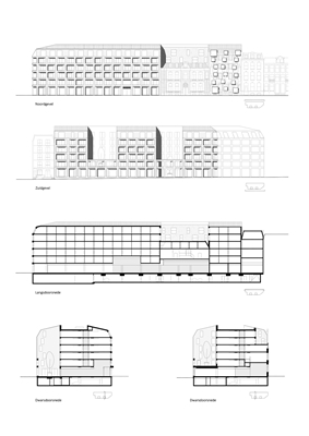 Op architectonisch niveau heeft het bureau dit bereikt door de drie historische gevels te behouden en die op te nemen in de nieuwe structuur. Dat is bij elk van de drie oorspronkelijke gevels op een eigen, bijzondere manier gedaan, bijvoorbeeld door de toevoeging van een terugliggende groengevel of naar voren springende kozijnen.