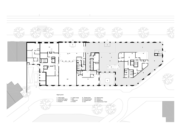 Het nieuwe Hyatt Regency hotel is een semi-publiek gebouw van 17.000 m