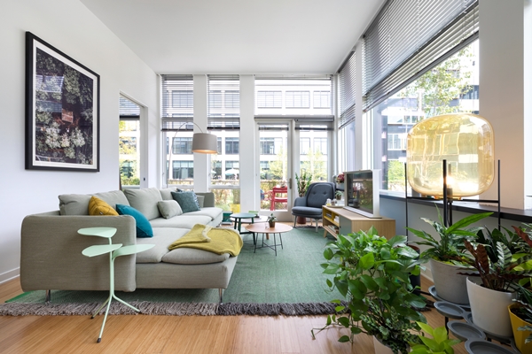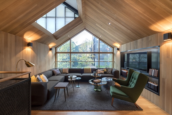 De centraal gesitueerde tuin verbindt verschillende gemeenschappelijke functies, zoals een sportschool, een keuken, een openbaar toegankelijk entreecafé en een opnamestudio die wordt beheerd door een muzikant-in-residence.