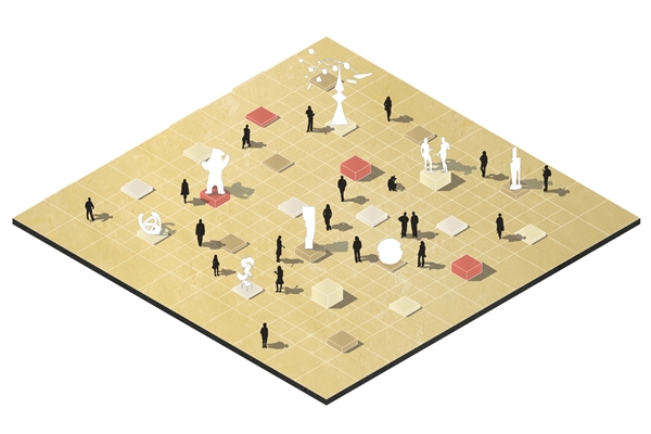 Het plein bestaat uit modulaire elementen van diverse afmetingen en eigenschappen: hoofdzakelijk trappen, bakken en blokken. De modules zijn verplaatsbaar en stapelbaar; ze bieden zitgelegenheden om te werken en te studeren.