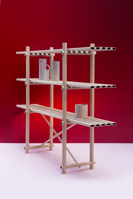 Hij geeft hiermee het dunne Decospan Decoflex-fineer een ongekende constructieve kracht. Deze techniek bespaart ook nog eens enorm veel hout tijdens de productie. Met de holle, open kast geeft Van den Berg de flexibiliteit van eikenfineer een nieuwe betekenis.