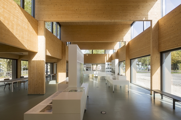 Bovendien zorgt het gebruik van een prefabricatiesysteem voor een goede afwerking bij het beperkte budget en het ontbreken van specifieke houtbouwervaring bij de aannemer. Tegelijkertijd draagt het hout bij aan een aangenaam binnenklimaat, prettig licht en akoestisch comfort.