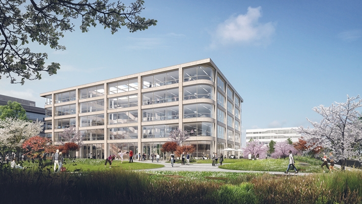 presenteert RED Company nu ook de ontwikkeling van het hoofdkantoor van Danone op de kavel ernaast. Net als het hoofdkantoor van Asics is ook het hoofdkantoor van Danone een ontwerp van Powerhouse Company.