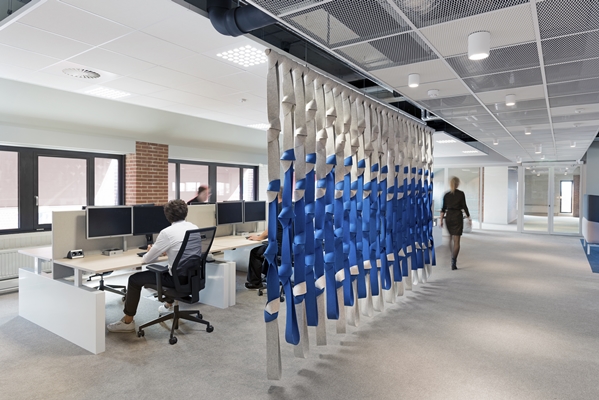 Om die geschiedenis zichtbaar te maken in de nieuwe werkomgeving heeft ZENBER voor het stadhuis vilten room dividers ontworpen, die zijn geïnspireerd op de vissersknopen. Daarnaast heeft het bureau grafische dessins voor glasfolies ontworpen, die zijn geïnspireerd op de markante rijksmonumenten van Harderwijk.