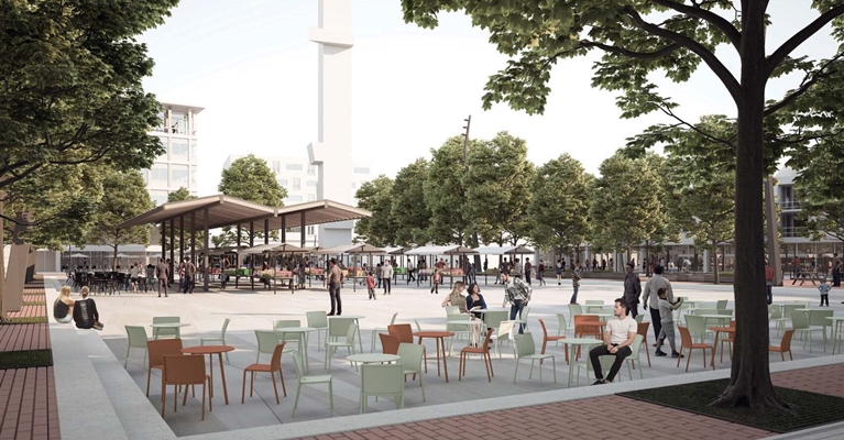 Het Delftse architectenbureau is een van de drie bureaus van wie de gemeente dit weekeinde het conceptontwerp voor de herinrichting van het Marktplein heeft bekend gemaakt. Mecanoo stelt onder meer voor om het plein te voorzien van een brede rand als verblijfs- en verplaatsingszones en direct langs de plint plek voor bijvoorbeeld terrassen.