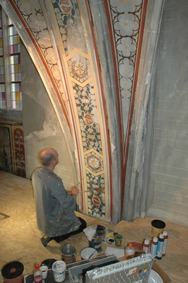 Tijdens diverse verbouwingen in de loop van de jaren was twee-derde daarvan overgeschilderd. Tijdens het project is onder andere een grote schildering in de apsis, van Jos ten Hornis, volledig in oude luister hersteld.