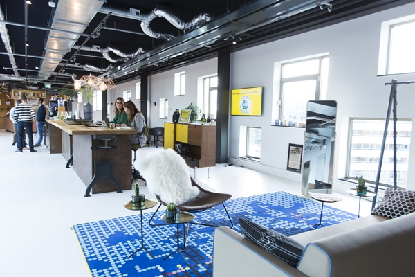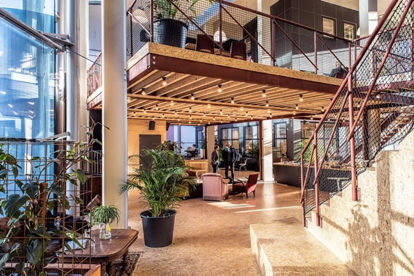 Ondertussen is Studio Fabrick door verschillende ‘corporates’ gevraagd om hun entreehallen en ontmoetingsruimtes aan te pakken. “Onze benadering daar is feitelijk dezelfde als bij B. Amsterdam”, vertelt Van Zoest, “maar het materialenpalet dat we gebruiken passen we natuurlijk wel aan de gebruiker aan.” Op steeds meer plekken wordt de traditionele, ‘corporate’ kantooromgeving zo verzacht ten faveure van een dynamischer, huiselijker, kleurrijker, tactiele en groener omgeving waar ontmoeting en samenwerking centraal staan en waar je je af en toe ook kan terugtrekken om geconcentreerd ergens aan de werken of jezelf weer even op te laden.
