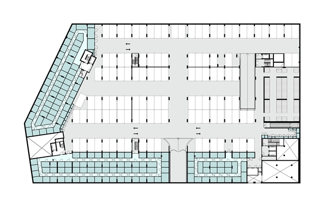 Op de begane grond wordt gewerkt, op de verdiepingen gewoond. Parkeren gebeurt in twee lagen onder de semi-openbare binnentuin. Onder de binnentuin bevindt zich ook de WKO-installatie.