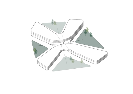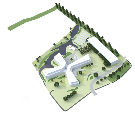 De vleugels of de ‘vingers’ van het gebouw, die zich over het landschap uitstrekken, kunnen zich onafhankelijk van elkaar ontwikkelen, waardoor ook toekomstige flexibiliteit van deze gebouwdelen is gewaarborgd. Wiegerinck won de opdracht op basis van zijn visie via een besloten architectenselectie.
