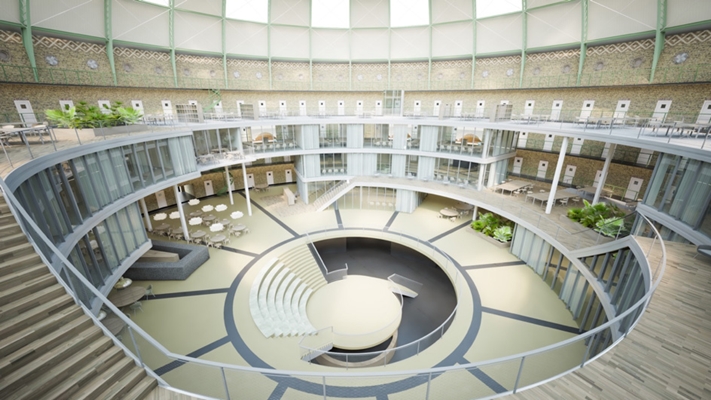 Het ontwerp, met name dat voor de transformatie van het koepelgebouw zelf, is vergaand uitgewerkt, aldus Van de Sande. "De komende periode brengen we het ruimtebeslag van de verschillende en elkaar aanvullende opleidingen goed in kaart."