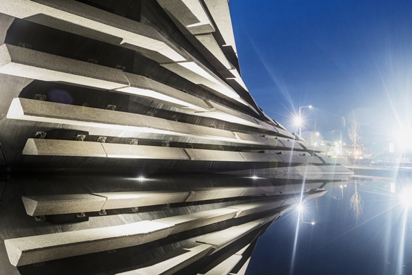 Het museumgebouw, gesitueerd op de kade van de rivier Tay, valt op met zijn complexe geometrie en horizontale gelaagdheid van de gevel. De Japanse architect heeft hiervoor inspiratie gevonden in de kliffen langs de Schotse oostkust.