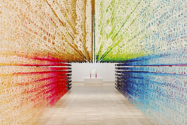 Aan het eind van de tunnel is op een verhoging de Miss Blanche-stoel van de Japanse ontwerper Shiro Kuramata. Het meubel fungeert als visuele as voor de doorgang van de installatie.