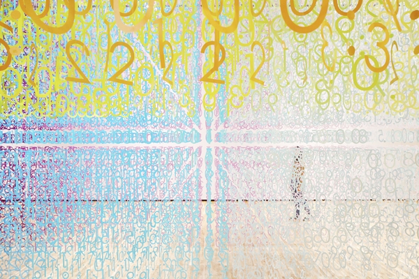 De installatie is geleed in drie volumes, bestaande uit in totaal 120.000 getallen (van 0 tot 9) en het dubbele punt-symbool, die zijn opgehangen aan draad. Ook in de ogenschijnlijk dichte volumes is het kleur- en tijdverloop te ervaren.