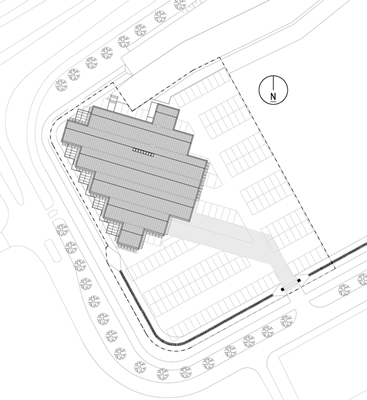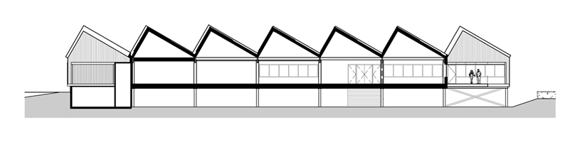 De hoofddraagconstructie is in hout ontworpen, meldt Mirck Architecture. Het zaagtand dak kan volledig in kruislaags hout uitgevoerd worden. Dit massief houten dak blijft binnen in het zicht. De gevels bestaan uit een combinatie van hout en goud. Omwille van het programma en de oriëntatie is iedere gevel anders, maar repetitie van materialen en kleuren zorgen voor een herkenbaar geheel.