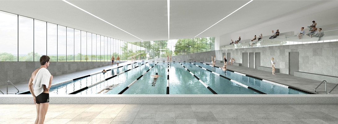 de aanbesteding voor een sportgebouw op het Atriumterrein in Kerkrade gewonnen. Het in het landschap ingebedde gebouw vormt de eerste stap in de herontwikkeling van het voormalige ziekenhuisterrein. Het 16.000 vierkante meter grote complex biedt ruimte aan onder andere een sporthal, een overdekt zwembad met meerdere baden en een parkeergarage.