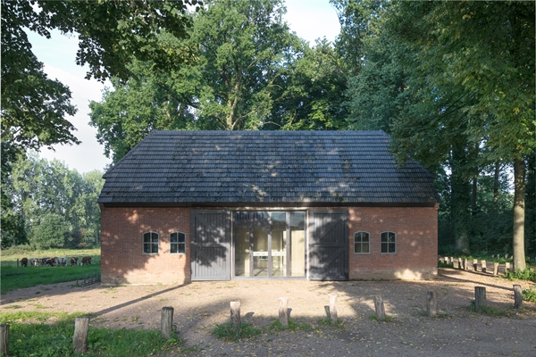 Er is niet gekozen voor een generieke neutrale witte tentoonstellingsruimte maar gezocht naar een subtiele omgang met de aanwezige karakteristiek. “De schuur is het enige gebouw op de buitenplaats zonder monumentale status, maar in zijn soort, wederopbouwschuur, toch bijzonder”, meldt Reset Architecture.