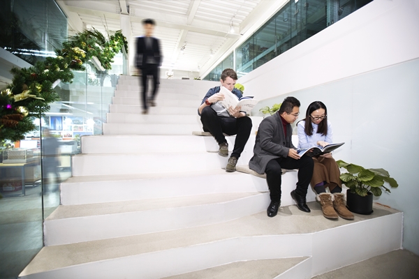China in Beijing. Het architectenbureau is sinds vorig jaar gehuisvest in een voormalige staatsdrukkerij, waar vroeger het grootste deel van de schoolboeken in China werden geproduceerd. Na het vertrek van de People’s Education Press in 2015 zijn de oude fabrieksgebouwen getransformeerd.