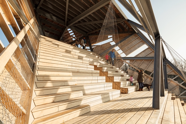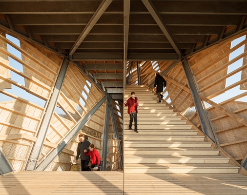Voor de bouw zijn alleen 3D-modellen gebruikt, die – omgezet in speciale scripts – ook konden worden gebruikt door de staalfabrikant en de timmerfabriek. Alle elementen werden gecodeerd aangeleverd en konden ter plaatse relatief eenvoudig in elkaar worden gezet, aldus het architectenbureau.