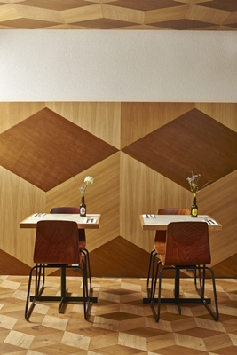 De sprekers op het netwerkevent hanteren allemaal een net andere benadering om hun doelen te bereiken. Studio IWT liet bij hun ontwerp voor Ballroom (Witte de Withstraat, Rotterdam) eerder al zien een beperkte ruimte met een tactiele materialisering een rijke beleving te kunnen geven. Bij pizzarestaurant Old Scuola (Industriegebouw, Rotterdam) richtten de ontwerpers zich helemaal op de beleving van het bakken van de pizza’s, door het hele restaurant als verlengde van de keuken te ontwerpen.