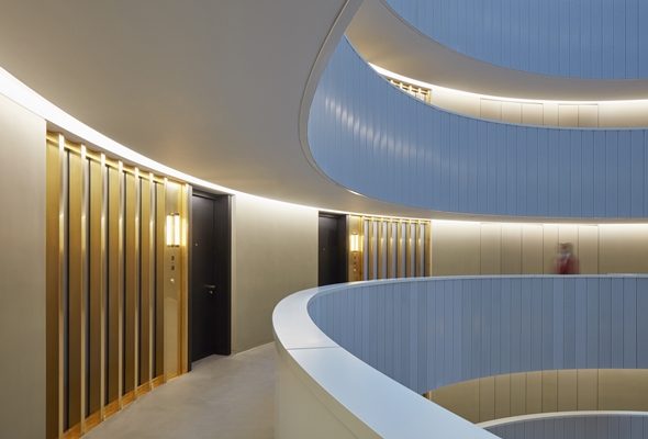 Door de cirkelvorm hebben de 145 appartementen een wigvormige plattegrond. De woon- en slaapkamers zijn aan de buitenzijde van de cirkel gelegd, om deze ruimtes zoveel mogelijk daglicht en uitzicht te bieden. Aan de binnenzijde liggen ruimtes als een filmzaal of ene spa. De interieurs zijn ontworpen door