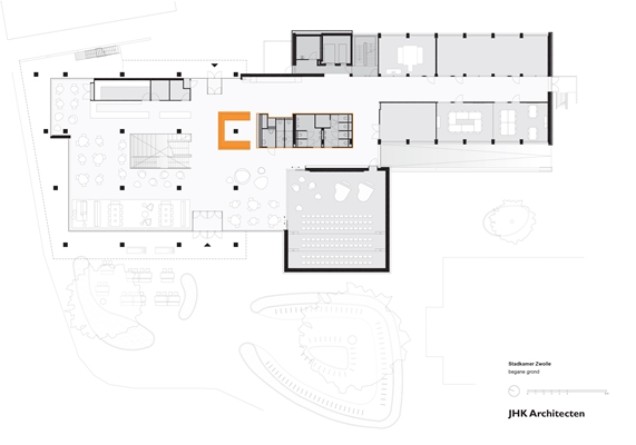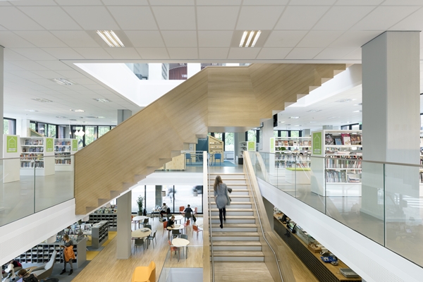 In de kelder en op de eerste en tweede verdieping is de collectie van de bibliotheek ingepast, met ertussen bijzondere plekken als een boomhut, voorleestribune en minibioscoop. Op de derde verdieping is ruimte over, die extern kan worden verhuurd, terwijl de vierde en vijfde verdieping bestemd zijn voor kantoren.