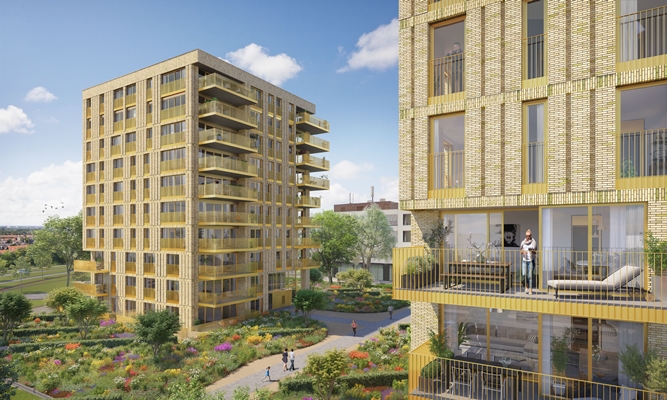 heeft het ontwerp gemaakt voor het project Spaarnelicht, een ensemble van 62 appartementen en penthouses met een goudgele uitstraling.