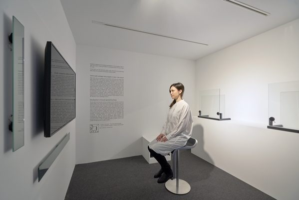 Resonance Materials is een kleine, eerder kunstzinnige expositie van vijf Japanse ontwerpers, die elk een object voor een zintuiglijke ervaring hebben gemaakt, zoals glazen objecten waarin licht reageert op onze beweging en oogbollen waar we in kunnen kijken. Het mooist is echter rijtje wuivende metalen sprieten, die als een tinkelende windgong klinken.
