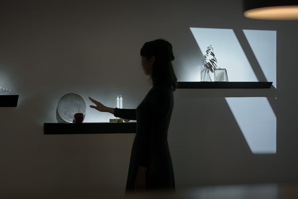 Verlichting die verschuift naar de plek waar we aan tafel plaatsnemen, schaduw van vlinders die de vaas volgen als we die over de tafel verplaatsen, een schommelbank die geluid van rollende golven maakt, een plankje met een blanco boek waar notenbalken op verschijnen en dat muziek laat horen als we ernaar wijzen. Veel suggesties die Sony doet, zijn in de (geluids- en media)kunst al ruim toegepast, maar de expo is prettig en soms verrassend.