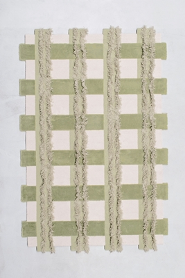 Het resulteert is wat Truly Truly zelf omschrijft als een ‘getextureerde plaid’. Opvallend is bovendien dat het raster iets buiten de ondergrond steekt, wat het vloerkleed iets meer richting een ‘object’ trekt. Het kleed, van 2 x 3 meter, is uitgevoerd in merinowol en eucalyptusvezel, en verschillende kleurpaletten.